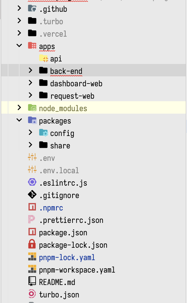 먼저 제 monorepo 패키지 구조는 다음과 같이 되어 있습니다.