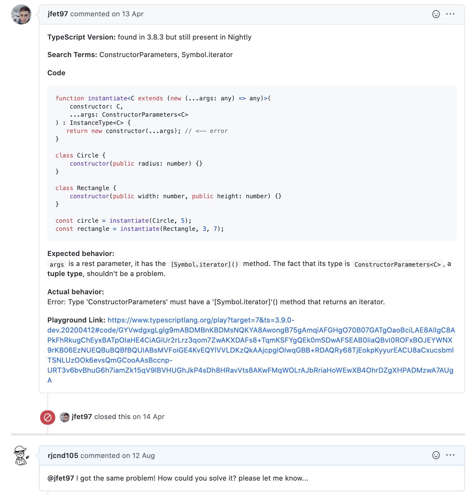 Type 'ConstructorParameters' must have a '[Symbol.iterator]()' method that returns an iterator. · Issue #37923 · microsoft/